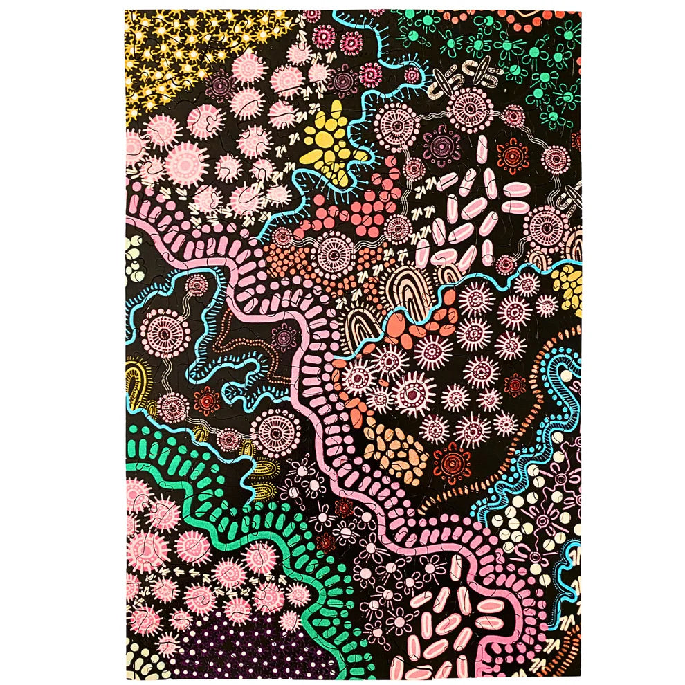 Yathi winga (Good Day) Leah is a proud Mayi Woman from North-Western Queensland. She finds her inspiration in her cultural identity and she brings her stories of her country and people in her art. She paints stories of strength for woman and children, love of the land and her people. Leah paints both traditional and contemporary art using story telling in every art piece to teach and educate. She hopes to inspire and uplift her people by sharing her culture and stories through her art. Sharing love and harmony is a core focus for Leah.